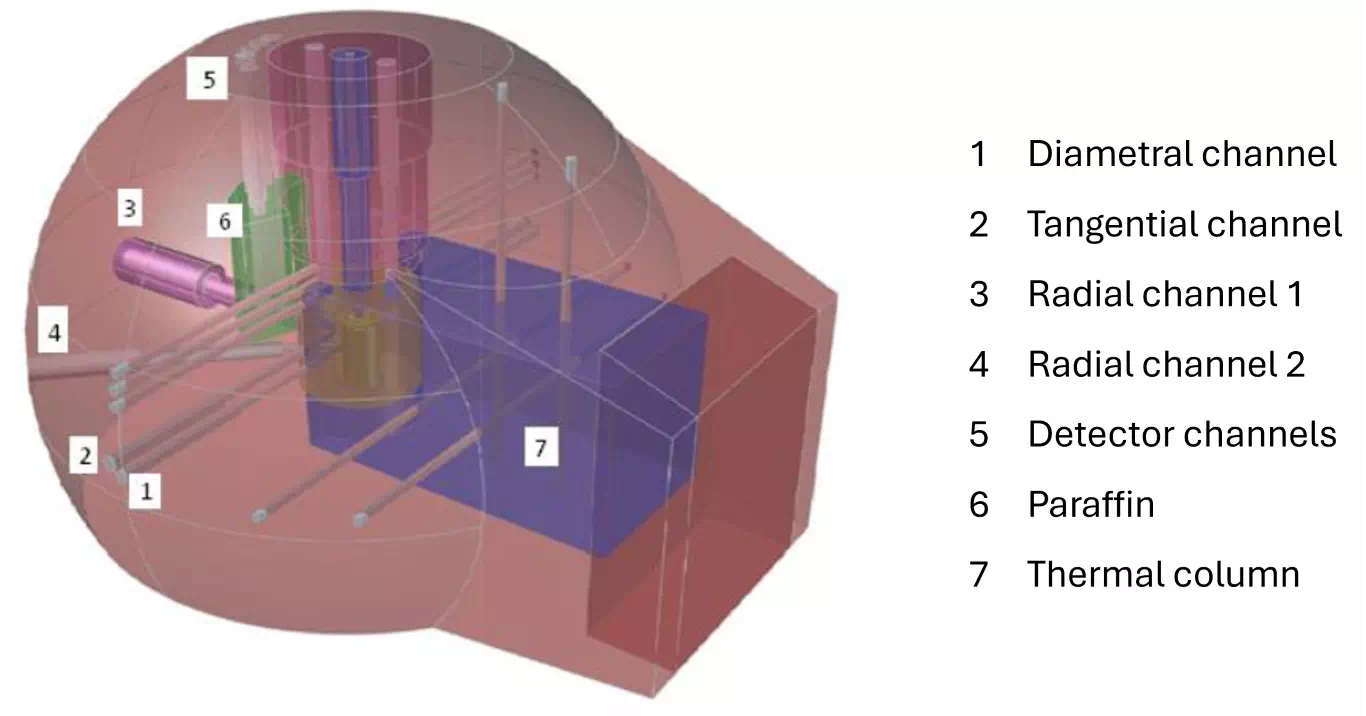 - Thermal column, in the biological shield, with 110×116×160 cm³ exploitable volume