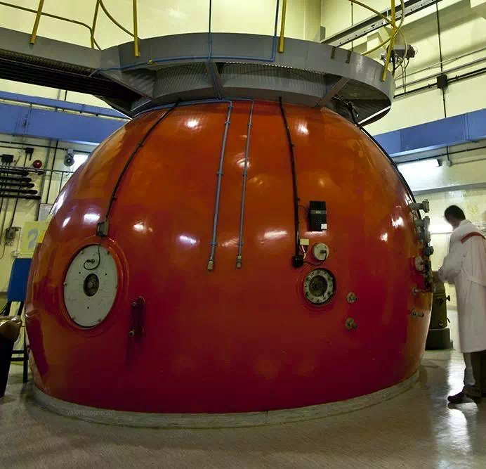 - Large horizontal channel, coaxial with the radial channel 1, extending through the biological shield, with 400 mm exploitable diameter